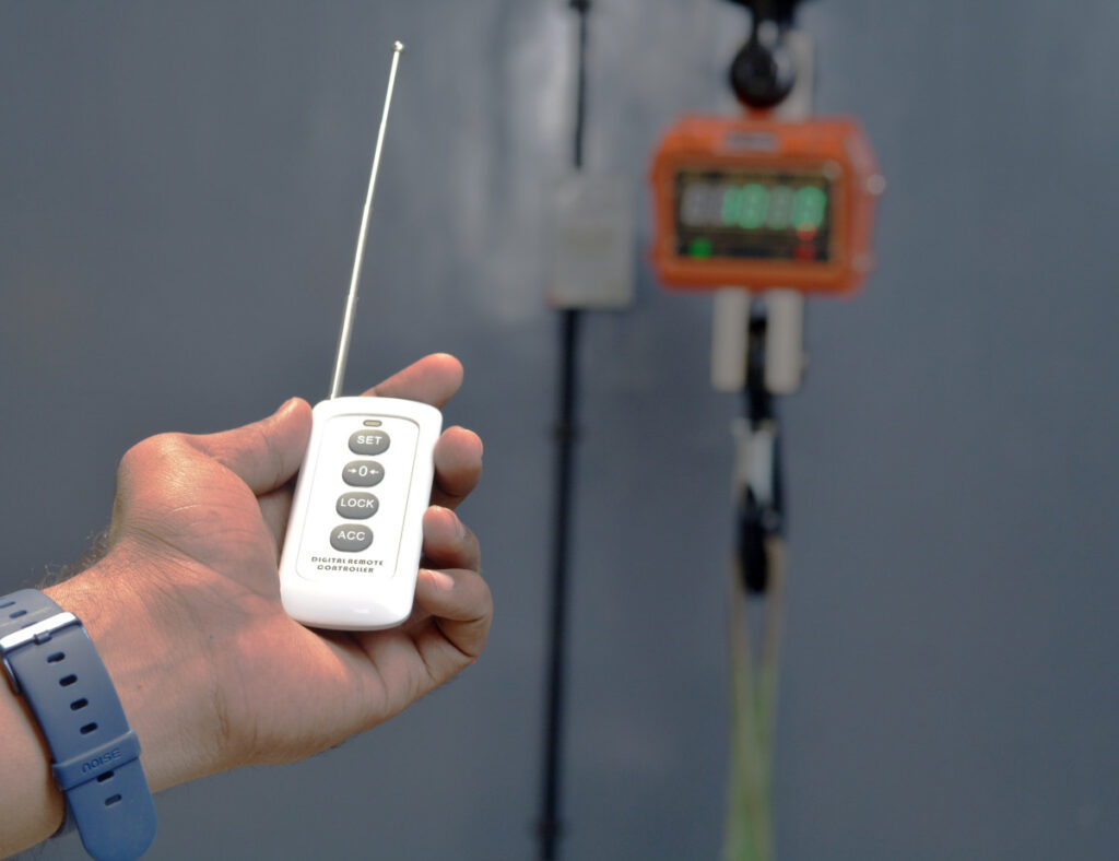 Ideal for use in manufacturing setups, factories, Steel Industries and heavy-duty industrial plants with alloy steel die-pressed bow shackles. It has a fixed lifting hook with a safety latch. Equipped with infrared wireless remote control for simple user-friendly operation and external battery adaptor and 2 sets of batteries for 24×7 use. Its super bright green LED display with a digit height of 30 mm provides an excellent readability in any kind of light conditions.