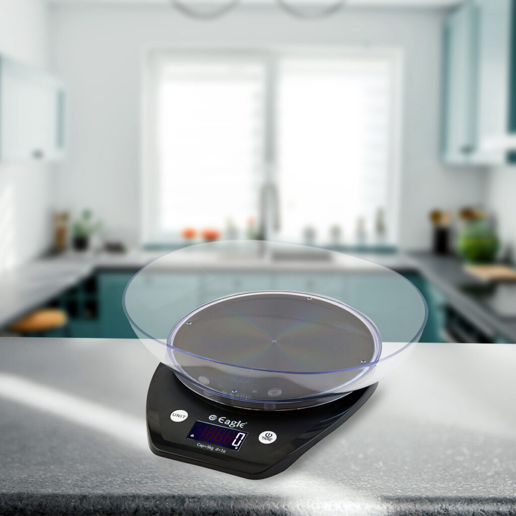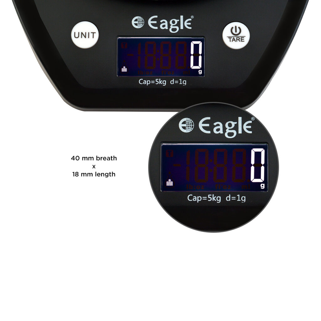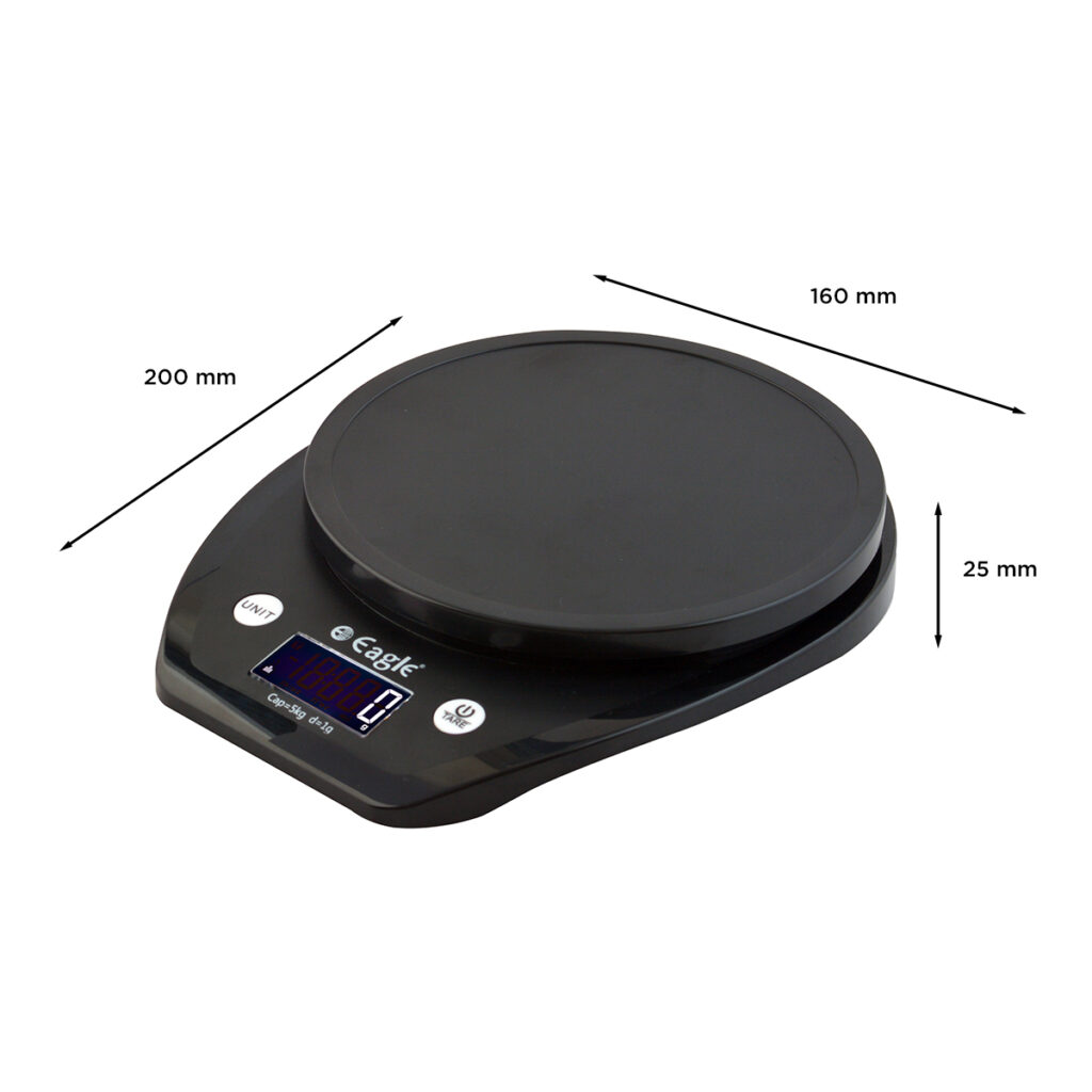With the EAGLE EEK3001A digital kitchen scale, the enjoyment of a meal starts long before you sit down to eat. From its large display, extra weight-bearing capacity, A bowl to practical additions such as a unit function, the EEK3001A comes with a host of impressive features. Its innovative unit function allows as single touch of a button to switch between weight units: A really practical feature when preparing traditional generational family dishes. The weight is displayed on the large white LCD display in white illuminated digits, in 1-gram steps, and is easy to read, even in poor lighting. For added convenience, the EEK3001A also comes with tare function which allows for multi indegrient recepies to be easily weighed at one go. its tare function means another ingredient can be added at any time. No matter what you’re weighing, the scale’s food grade plastic bowl can be easily washed and cleaned in an instant. Because its sleek seamless design, no dirt gets stuck to it, everything stays clean and hygienic, and the scales retain their attractive, sophisticated appearance. The EEK3001A can be easily stored in a drawer to save space. Because of its automatic switch-off function, the scale is immensely energy efficient and comes with batteries so it can be used straight away.