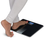 A true jewel! Its elegant design in black glass gives the digital personal scale a brilliant appearance in every bathroom. Its platform made of high-quality safety glass which offers comfortable stability when standing and easily supports up to 180 kg in weight. Body weight can be read on its large easy-to-read reverse LCD display, measure your weight in precise 50 g increments. Feel the easy and comfort as you weigh yourself – simply step on the scale to switch on and read your weight reading – step off the scale and walk away and let the auto off function switche off the scale by itself prolonging battery life. Batteries included.