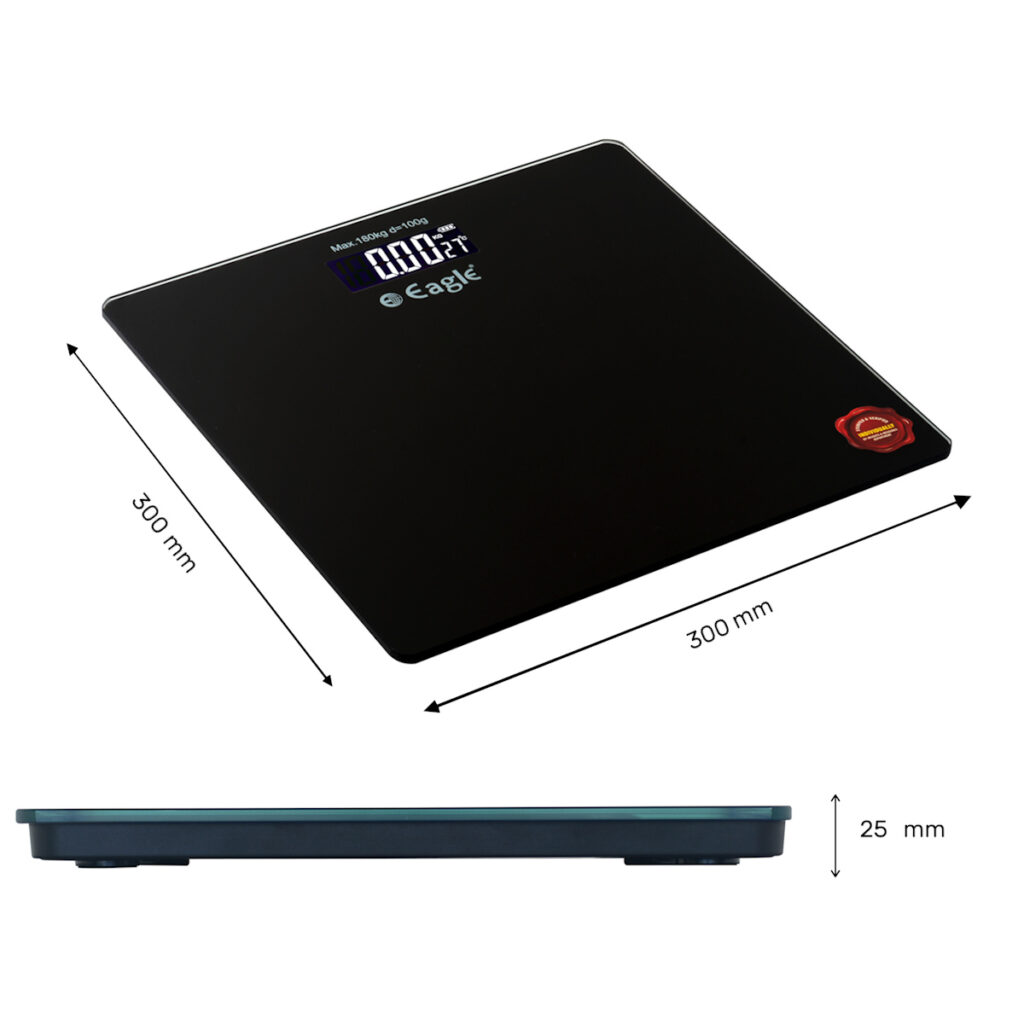 Electronic Weighing scale with dimensions of 300 mm (length) x 300 mm (breath) x 25 mm (height)