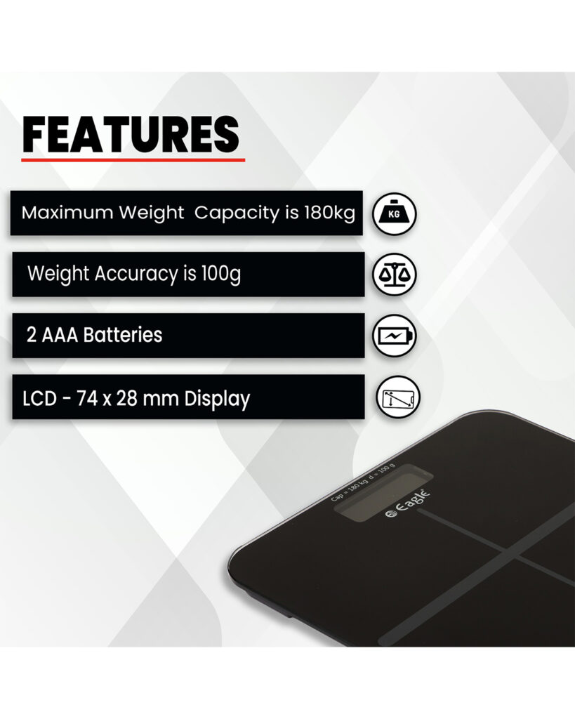 - Weighing Capacity – 180 kg