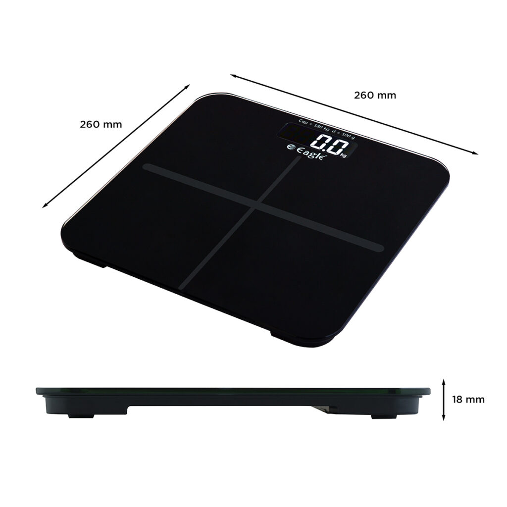 - Weighing Scale Dimension – 260mm(L) x 260mm(B) x 18mm(H)