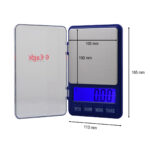 Weighing scale with dimensions of 166 mm x 110 mm x 22 mm